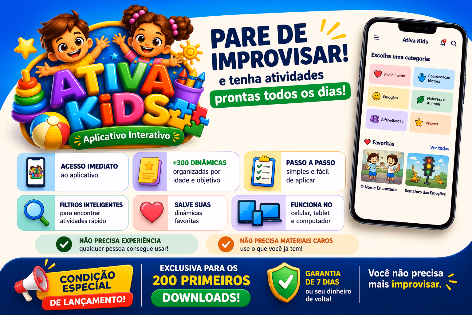 Eu sempre ficava perdida pensando no que fazer com as crianças todos os dias, parecia que estava sempre improvisando. Depois que comecei a usar o Ativa Kids, minha rotina mudou completamente. Agora eu abro o app, escolho a dinâmica e já sei exatamente o que fazer. As crianças ficam muito mais engajadas e eu me sinto muito mais segura em sala.